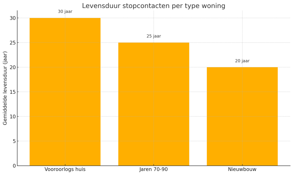 Ook stopcontacten hebben een levensduur. In de volgende grafiek zie je wat je in jouw huis mag verwachten.
